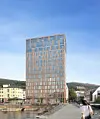75 høydemeter med hotell på kaia i sentrum. Det er nesten like høyt som Seilet hotell litt lenger vest, med sine 82 meter.