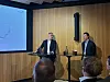 RESULTATER OG CASHFLOW: Mens mange i norsk eiendomsbransje er opptatt av NAV, mener Thomas Nielsen (th) at resultater og kontantstrøm er viktigst. Her i samtale med Newsecs Morten Kampli under Newsec & Friends' frokost.
