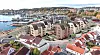 leiligheter. Bebyggelsen er avtrappet med skråtak ned til tre etasjer.