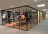 New York Style glassvegger på alle møterom, veggabsorbenter på bakveggene med påtrykte bilder av ansatte i produksjonslinjen til Modulvegger.