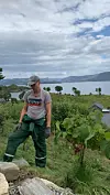 CIDER: Kyrre M. Knudsen foran druene som han pleier for å få ut edle dråper.