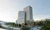 TRONDHEIMS CBD: Nyhavna og Brattøra har potensial til å bli Trond- heims CBD. Illustrasjonen viser foreslått kontorbygg mobilitetshus i sør ved brannstasjonen.Illustrasjon: Team COBE (Topic Architecture, Artelia og Dr. Tech Olav Olsen)
