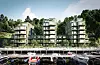 Først ut er en art deco-bygning med ferieleiligheter og brygge..