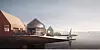 Tidlig illustrasjon, som viser hvordan Fornebu Brygge kan utformes med varierte møter med fjorden, samt skjermede og intime byrom.Illustrasjon : Mir/ Haptic/ Rodeo