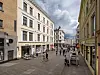 Kontorfellesskapet i tredje etasje ligger tilbaketrukket i en ærverdig bygård. To trapper ned finnes kafeer, butikker og kjøpesenteret Arkaden.